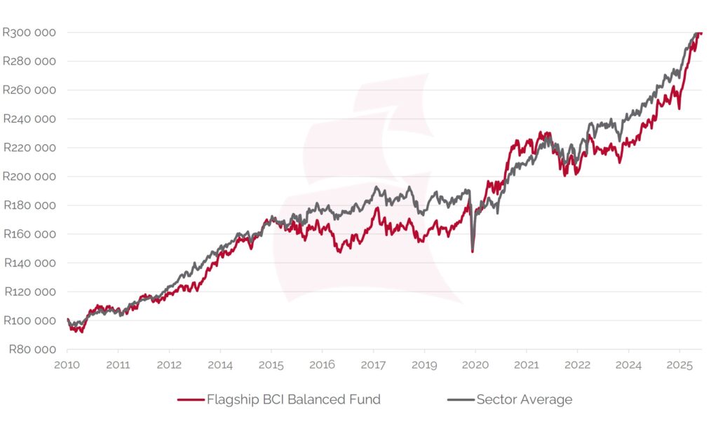 R100 000 invested in April 2010 would be R301,421 on 31 October 2025. |