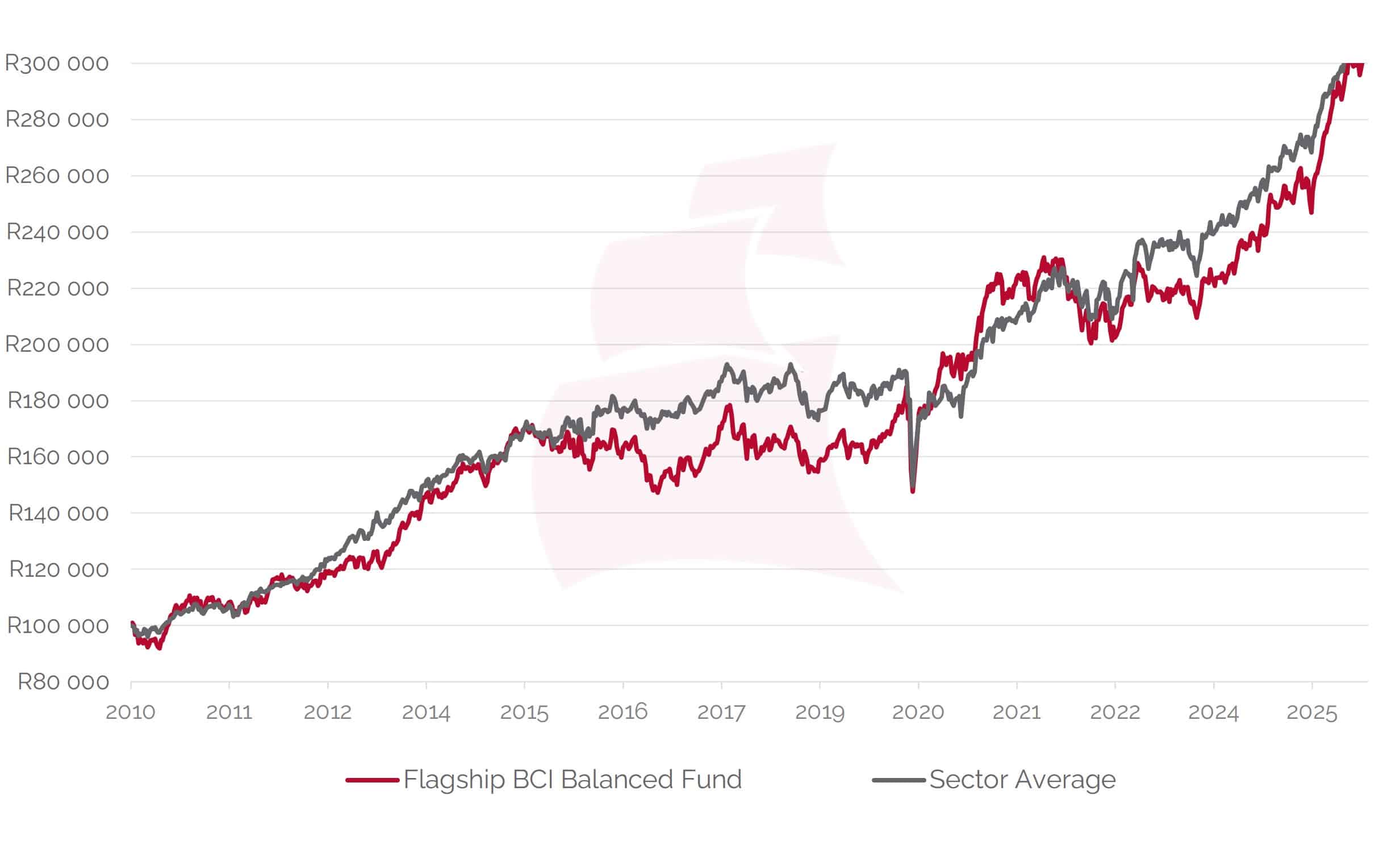 R100 000 invested in April 2010 would be R306,293 on 31 December 2025. |