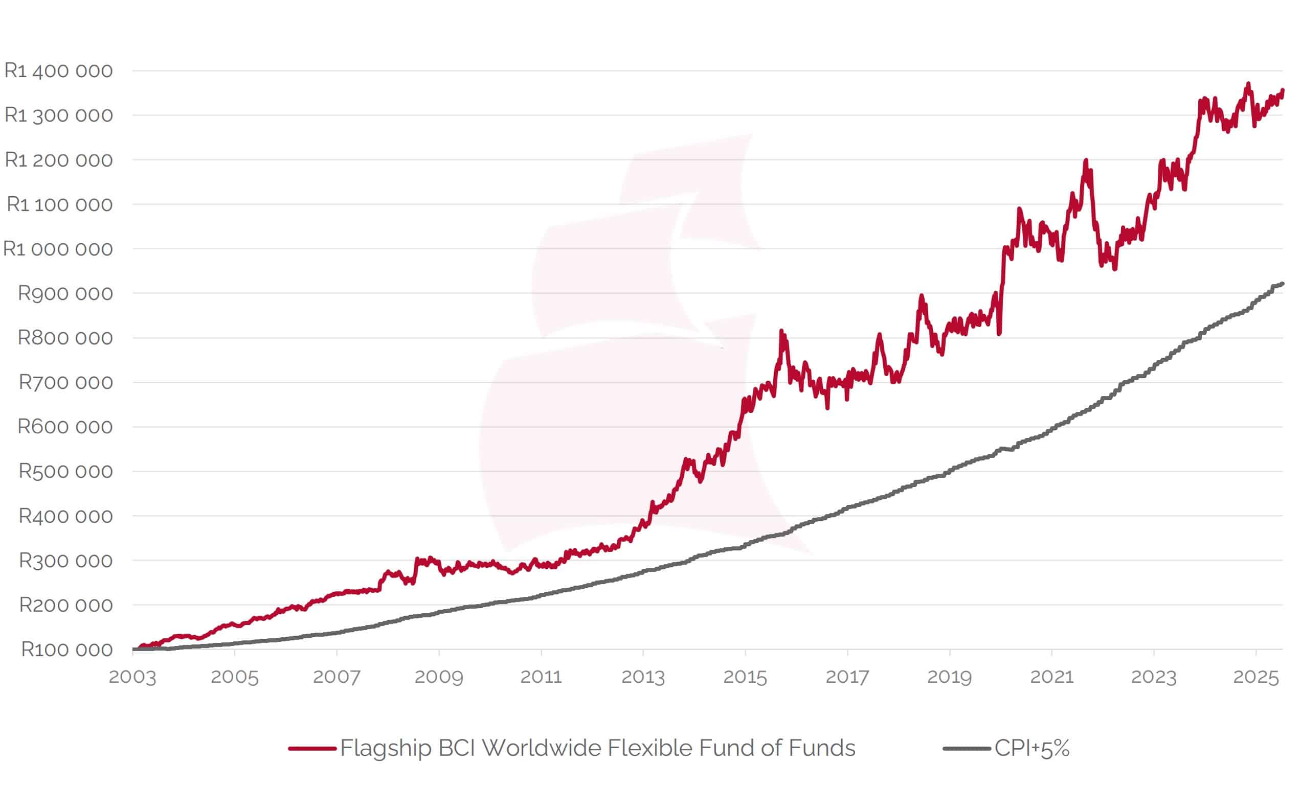 R100 000 invested in April 2003 would be R 1,356,965 on 30 September 2025.
