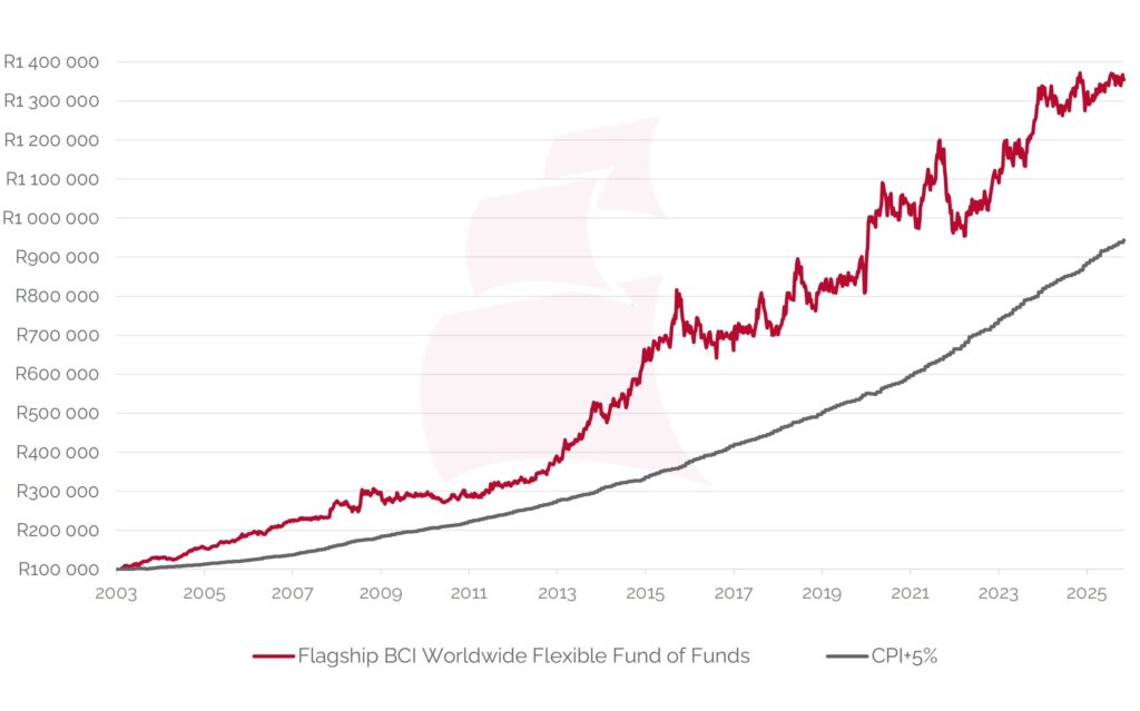 R100,000 invested in April 2003 would be R 1,354,001 on 31 January 2026. |