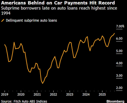 Overall, November was a relatively quiet month in terms of economic data, largely due to delays caused by the US government shutdown which turned out to be the longest on record. Amongst other data, private job’s numbers were strong, but US consumer sentiment continued to decline, hitting a 3-year low with persistent price increases. Once again, the government shutdown was cited as the main reason for these declines. Evidence of personal finance struggles is also evident in the percentage of Americans falling behind on their car payments, hitting the highest levels since 1994.