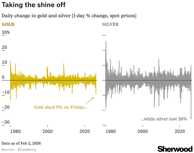 The real story this month was in the commodity space. Gold hit $5,000 for the first time ever and continued climbing a further 10% on top of that, breaching $5500. Silver, meanwhile, had its biggest one-day jump (+14%) in 40 years. The exuberance was short lived, though. Trump’s announcement of a new Fed Chair, perceived by many to be more hawkish, led to an historic collapse in metal prices. Gold fell 11% and silver 31% in a single session – the latter’s 2nd worst day on record.